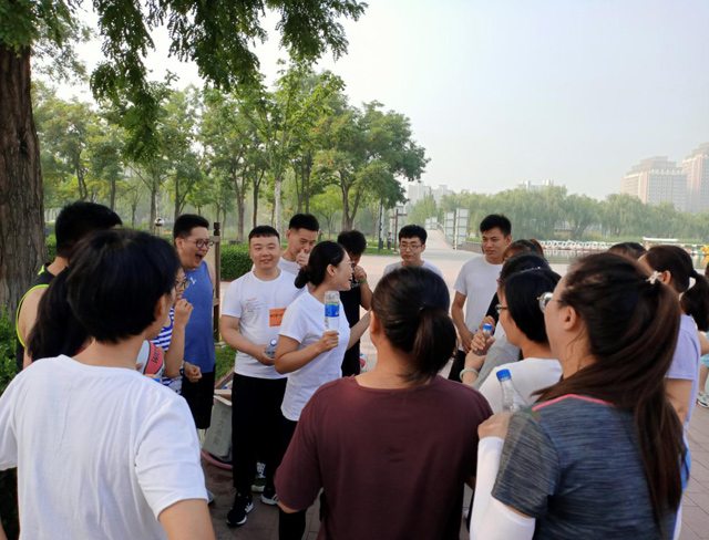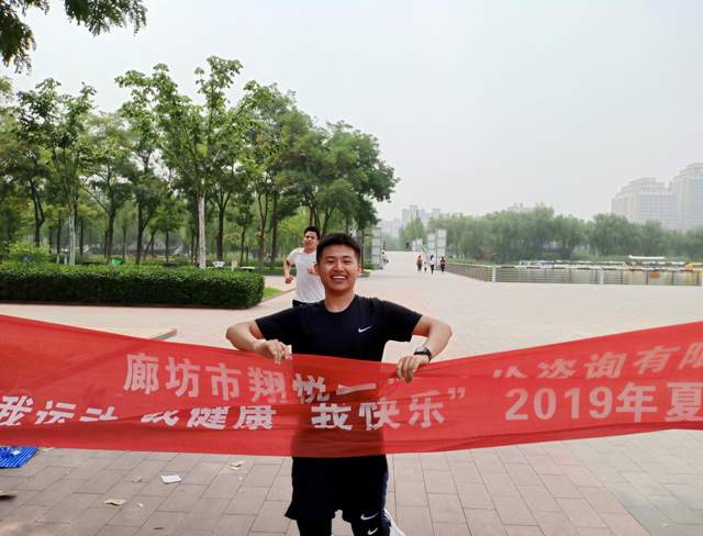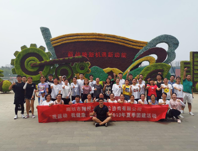 【翔悅大家庭】 七月盛夏,瓦藍瓦藍的天空沒有一絲云彩,火熱的太陽炙烤著大地,熱的湖里的魚不敢露出水面,鳥兒也不敢飛出樹林,就在這寂靜的時刻,廊坊市文化藝術中心迎來了一群80后90后的爽朗的笑聲、歌聲、加油聲...... 2019年7月13日清晨,公司全體人員齊聚廊坊市文化藝術中心公園,身著運動衣運動鞋的我們已經迫不及待的準備開始活動啦!